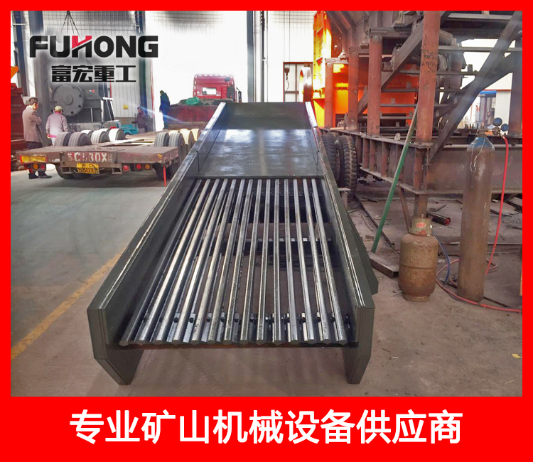 專為破碎篩分中粗破碎機前均勻輸送大塊物料設計。振動給料機采用雙偏心軸激振器的結構特點,保證設備能承受大塊物料下落的沖擊,給料能力大。在生產流程中可以把塊狀、顆粒狀物料從貯料倉中均勻、定時、連續地給到受料裝置中去,從而防止受料裝置因進料不均而產生死機的現象,延長了設備使用壽命。給料機可分為鋼板結構和篦條結構,鋼板結構的給料機多用于砂石料生產線,將物料全部均勻地送入破碎設備;篦條結構的給料機可對物料進行粗篩分,使系統在配制上更經濟合理,在破碎篩分中已作為必不可少的設備。