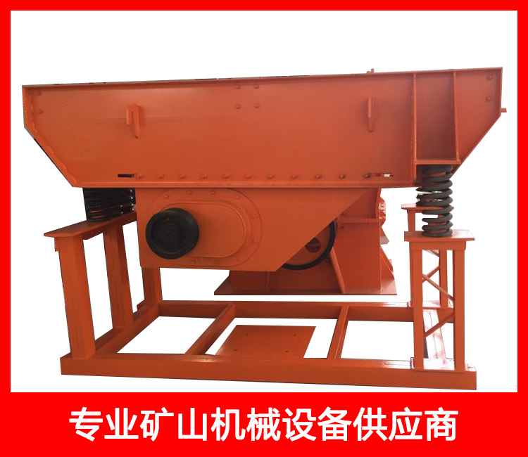 專為破碎篩分中粗破碎機前均勻輸送大塊物料設計。振動給料機采用雙偏心軸激振器的結構特點,保證設備能承受大塊物料下落的沖擊,給料能力大。在生產流程中可以把塊狀、顆粒狀物料從貯料倉中均勻、定時、連續地給到受料裝置中去,從而防止受料裝置因進料不均而產生死機的現象,延長了設備使用壽命。